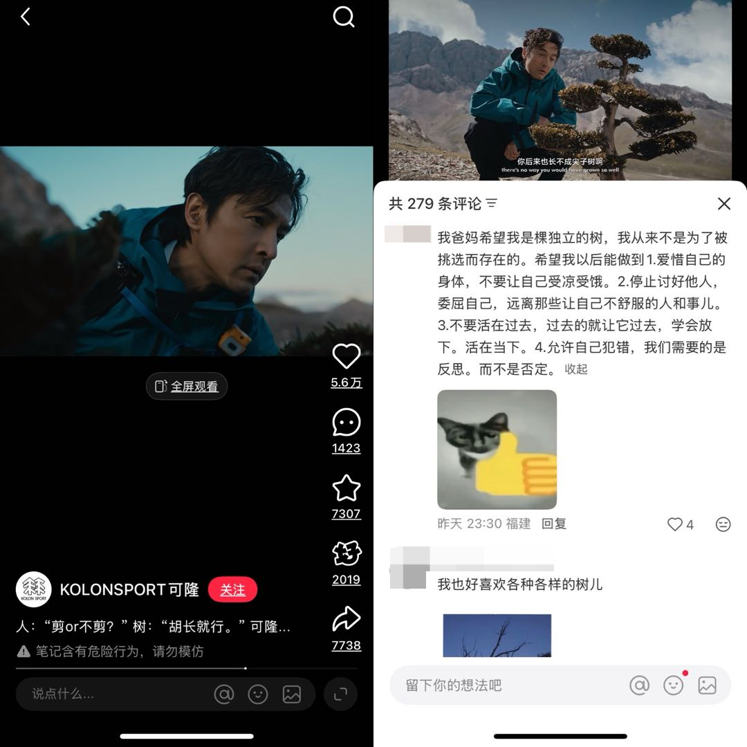 这种深度的共鸣是可以带来持续影响的,就像去年可隆和胡歌合作的《不在场证明》,至今仍旧有热度,因为它触及了“户外人探索自然”的底层原则,引发了户外圈的认同与共鸣。而今年的《胡长的树》,更进一步地把人生困境和树的生长放在一起,让人找到自己的投射。