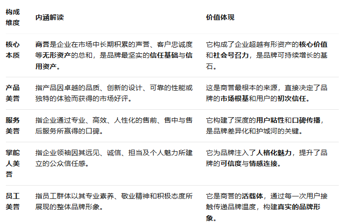 总结来说,就是将这四个“散装”的维度做实、做深,让其共同汇聚成强大的整体商誉,从而形成品牌真正的价值。