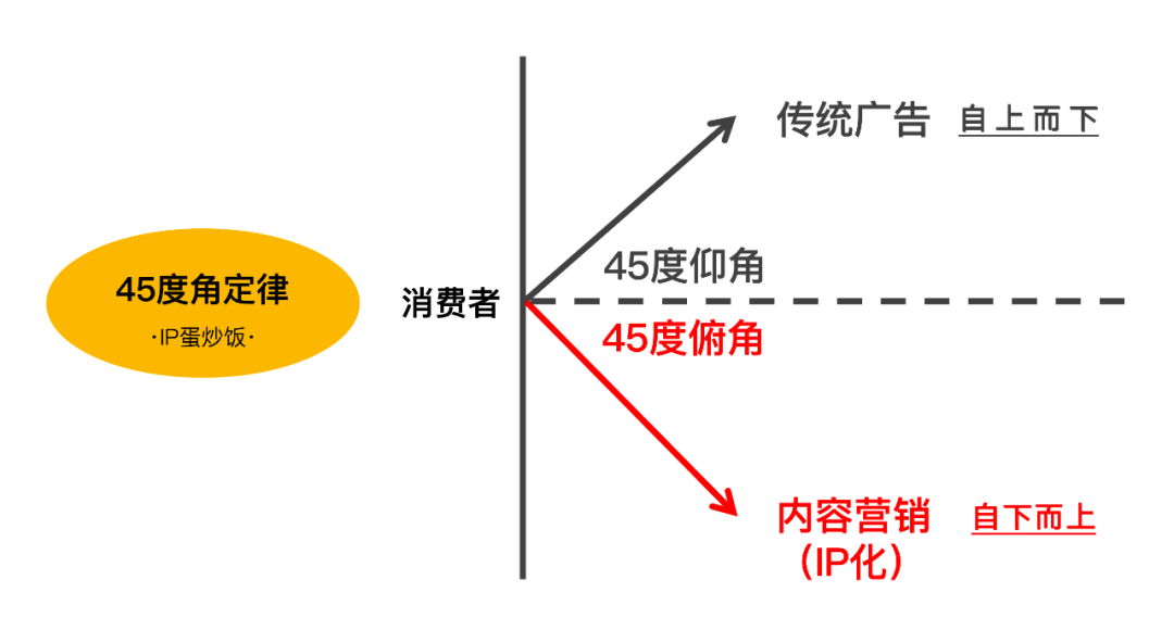 现在你要做的,不是去俯视消费者的广告,而是让消费者俯视你的商誉化内容传播,这就是在消费者的角度上,从45度仰角到45度俯角的改变。