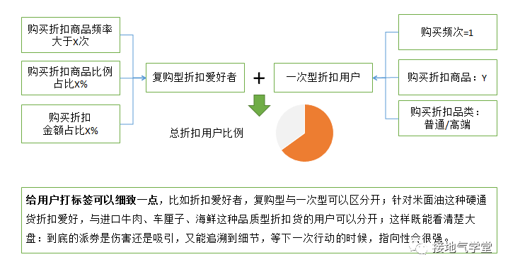 基于互动、消费行为标签会更好用,比如生鲜电商的领域,有多少客户是注册送20元米面油券,首单免配送费,进口车厘子25元4斤这种活动搞进来的。这叫促销敏感型用户。类似的,还可以打:刚性购买用户、异常天气购买用户、疫区用户等等标签,这些可能区分度更高(如下图)。