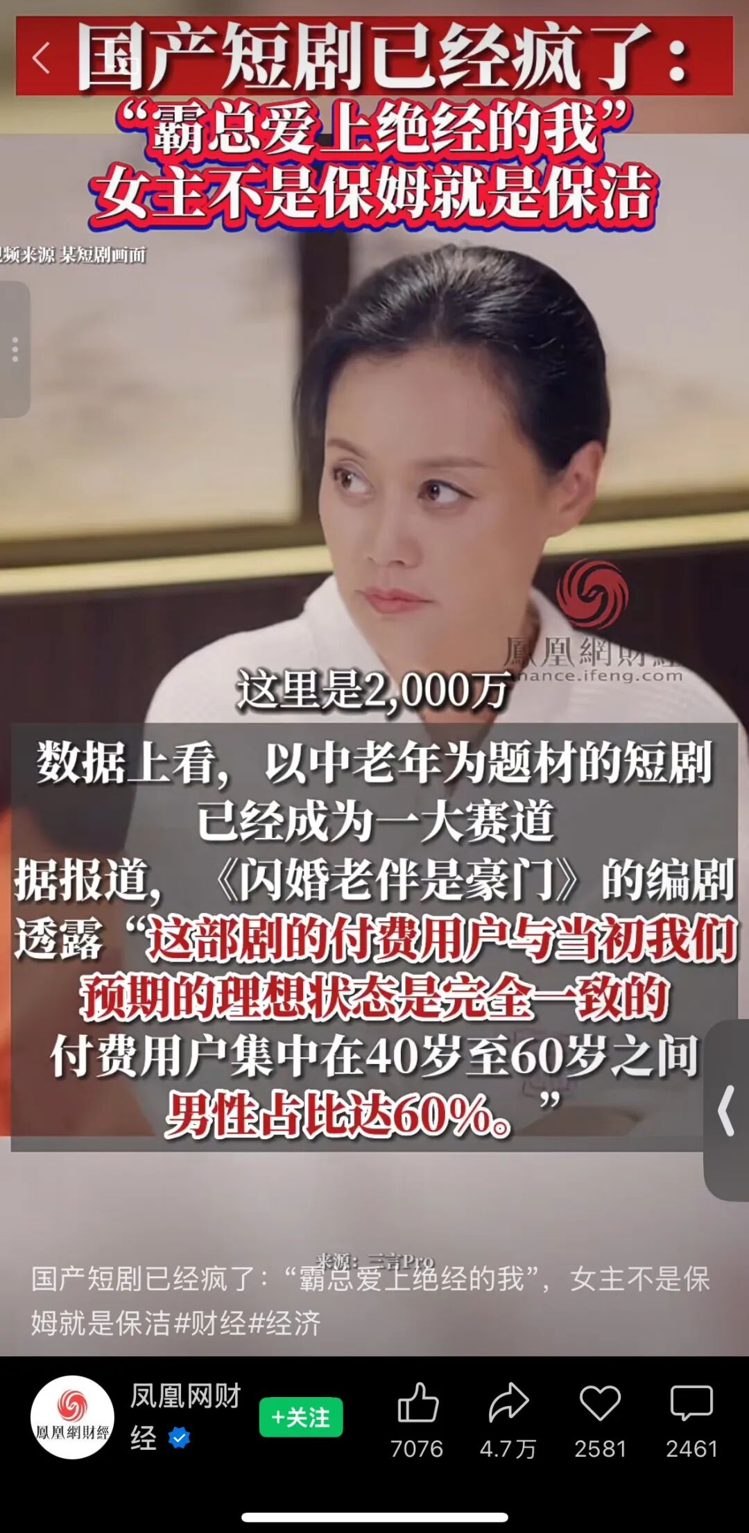 正如上文所说,如今在视频号上,70后更多会选择在视频号上观看短剧。可以说,“有钱有闲”的中老年人正成为视频号短剧的消费主力。