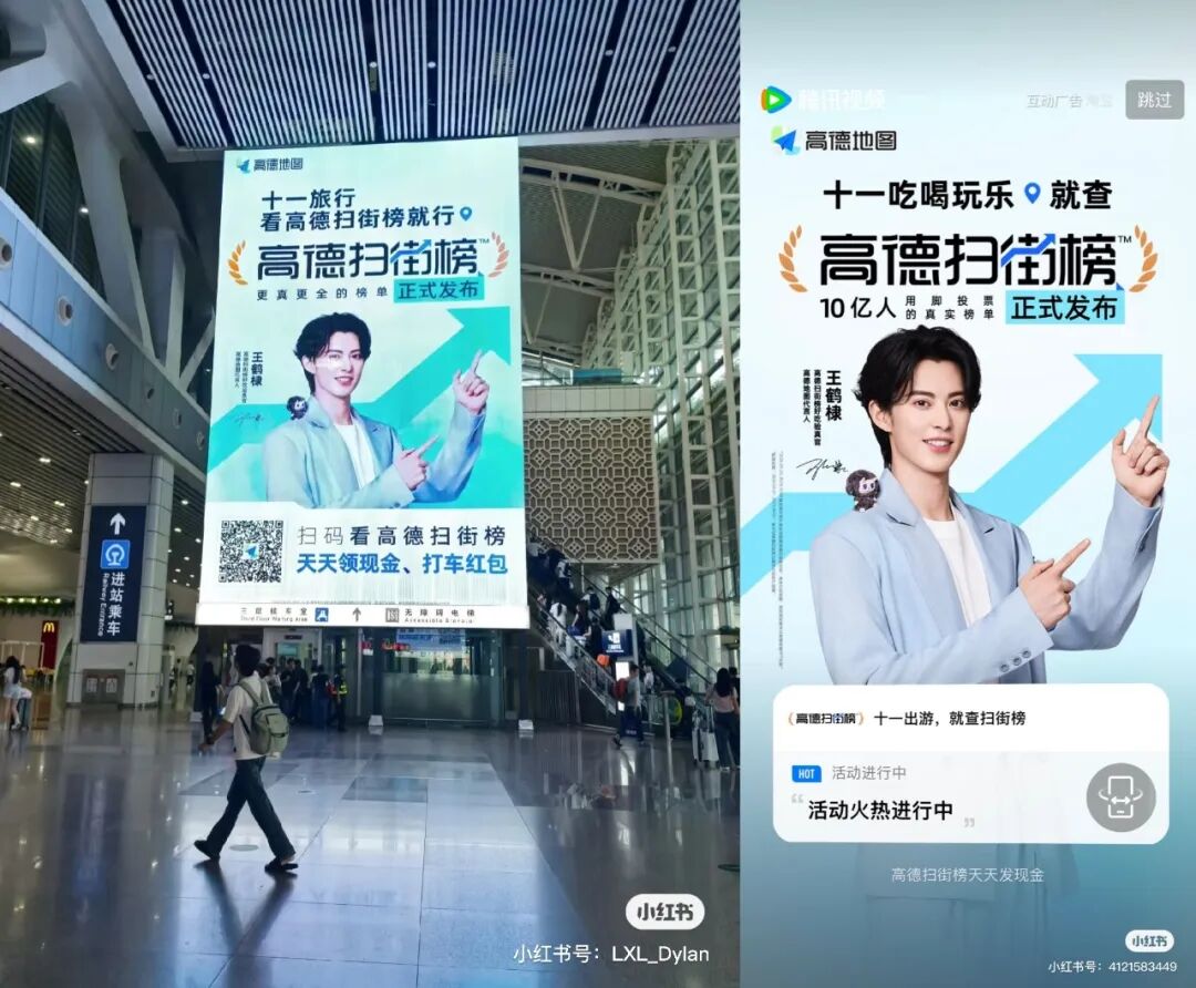 从节前的「错峰吃行提示」,到节日期间线上各大APP开屏,线下各大机场、高铁站广告牌,全都霸屏式呈现。国庆本就是出行和导航软件使用的高峰期,再加如此猛烈的广告攻势,国庆第3天,高德宣布扫街榜「累计用户超4亿」,10月1日当天高德本地生活餐饮行业订单量同比增长150%。