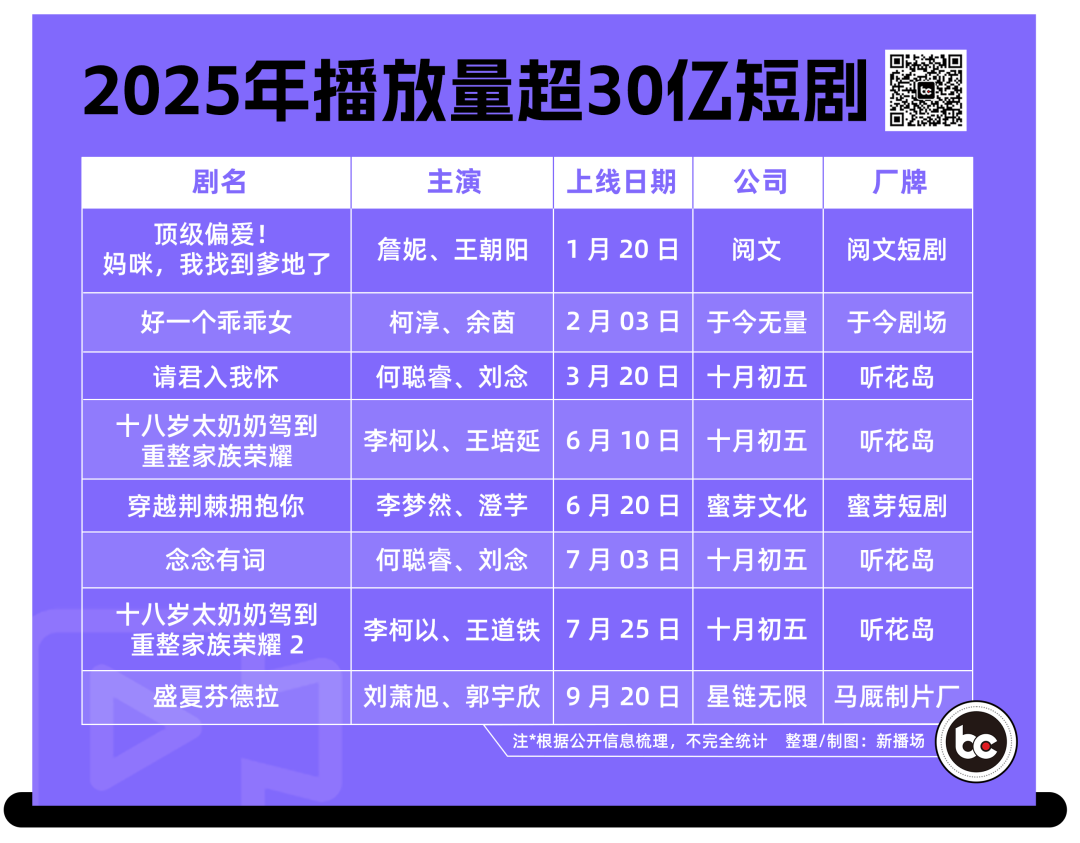 更为关键的是,这些爆款精品剧并非由某一家巨头垄断,而是站着一个又一个成熟的短剧厂牌——听花岛、于今无量、马厩制片厂等。