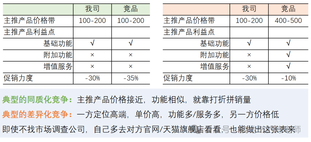 就能判断出来,我司是在同质竞争,还是差异化竞争了。