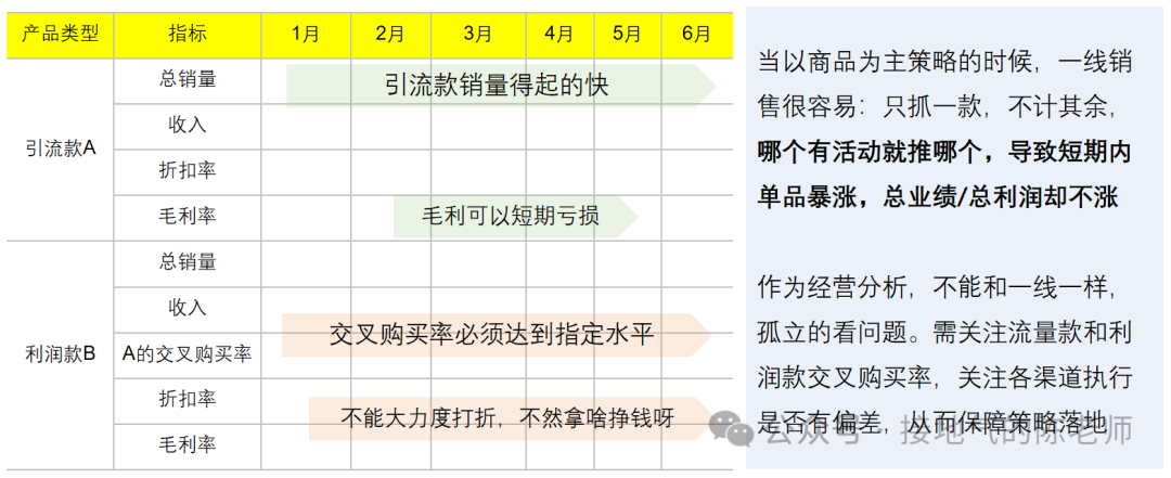 这时候,可以建立评估模型如下图,综合考察主销产品增长的同时,避免乱花钱,避免渠道只卖一款,不计其他,导致库存积压/利润下降。