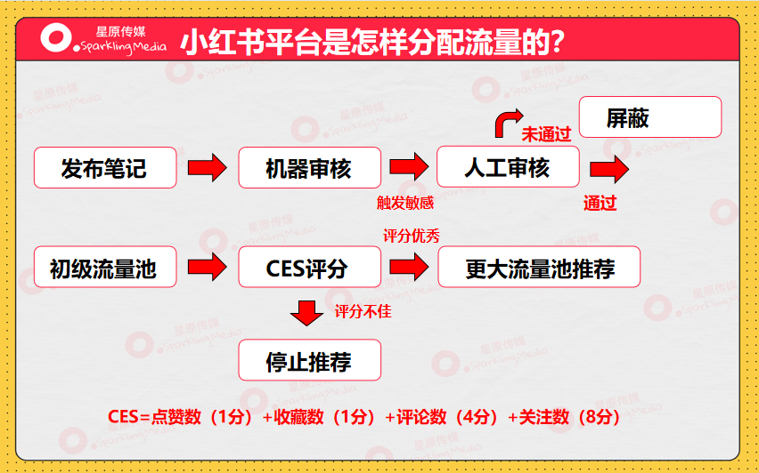 只有当我们投放的笔记发布后一段时间内,评分反馈高于一定值时,才有可能被平台推荐到更大的流量池。