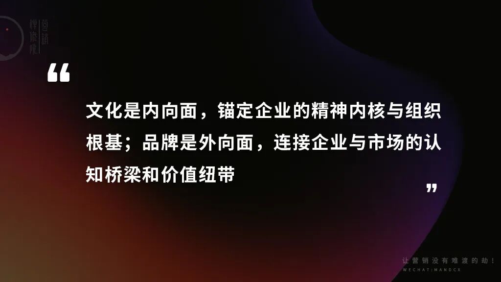 一言以蔽之:文化管 “内部人心”,品牌管 “外部市场”。