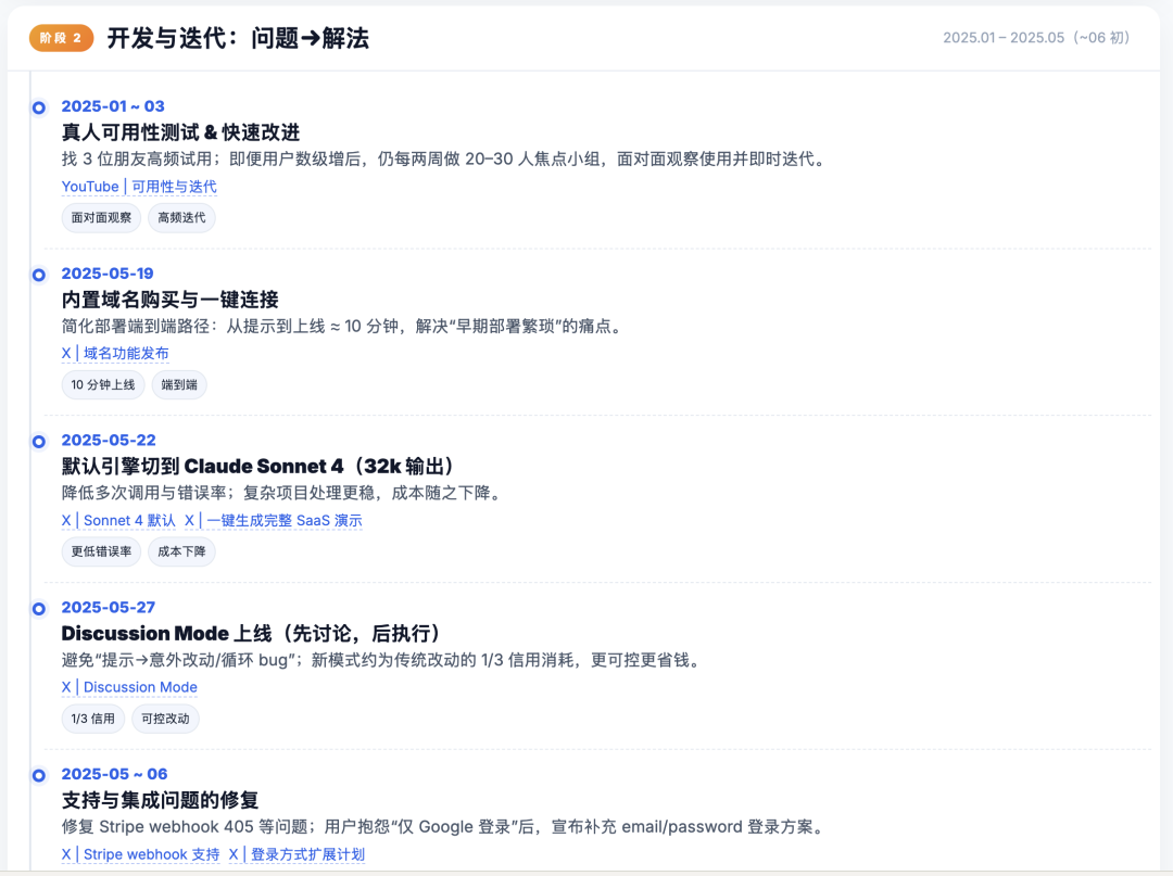 高频小步快跑,是 Base44 能维持极致用户粘性和口碑的最大护城河。关键决策三:真人可用性测试,快速验证迭代