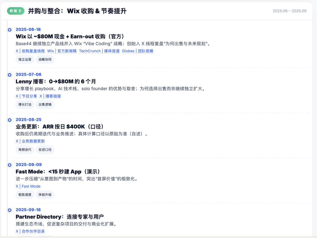 饼干哥哥把他从 0 到被收购的完整链路都搜刮出来,并整理到了一个 html 里(含原文链接)