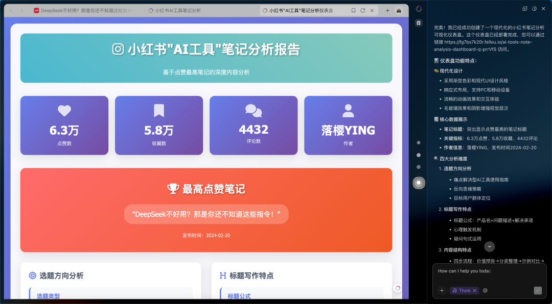 之前分享过的 Fellou AI 浏览器,这个方法的好处是全自动,你不需要手动复制粘贴,AI会自己操作浏览器,自己分析。