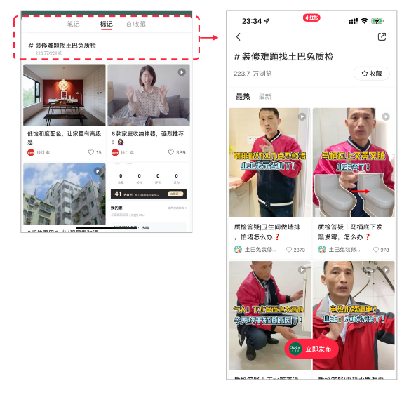 ① 其他用户在笔记中@了商家 或 添加了商家的“商业话题”,商家可以选择用户的优质笔记展示在【标记页】