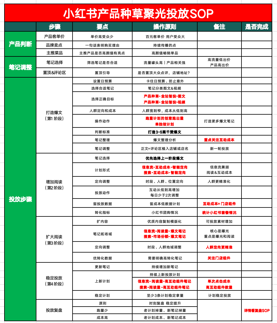 图:小红书种草SOP标准